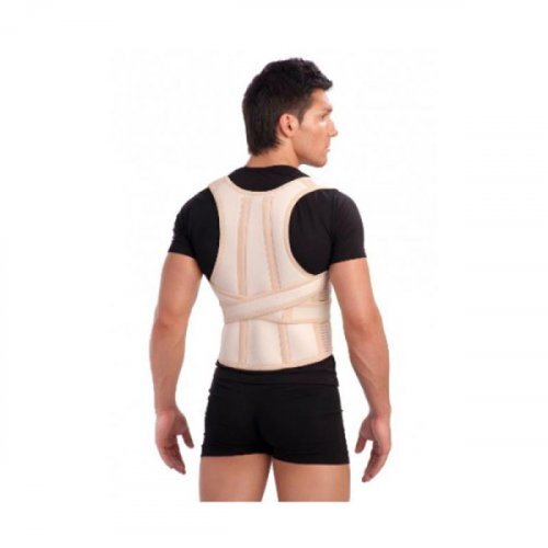 снабжен двумя съемными моделируемыми металлическими ребрами жесткости и системой эластичных лямок для восстановления и сохранения правильной осанки