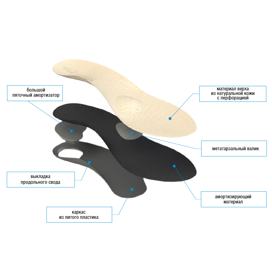 Тонкие стельки при плоскостопии из натуральной кожи для любого вида обуви с мягким слоем, который повышает амортизацию переднего отдела стопы и создает дополнительный комфорт при ходьбе..