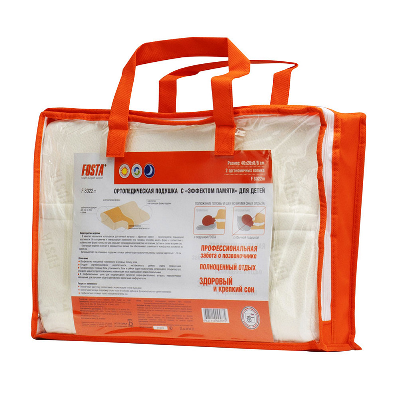 Подушка ортоп под голову с эффектом памяти F 8022m 40*26*8/6 FOSTA
