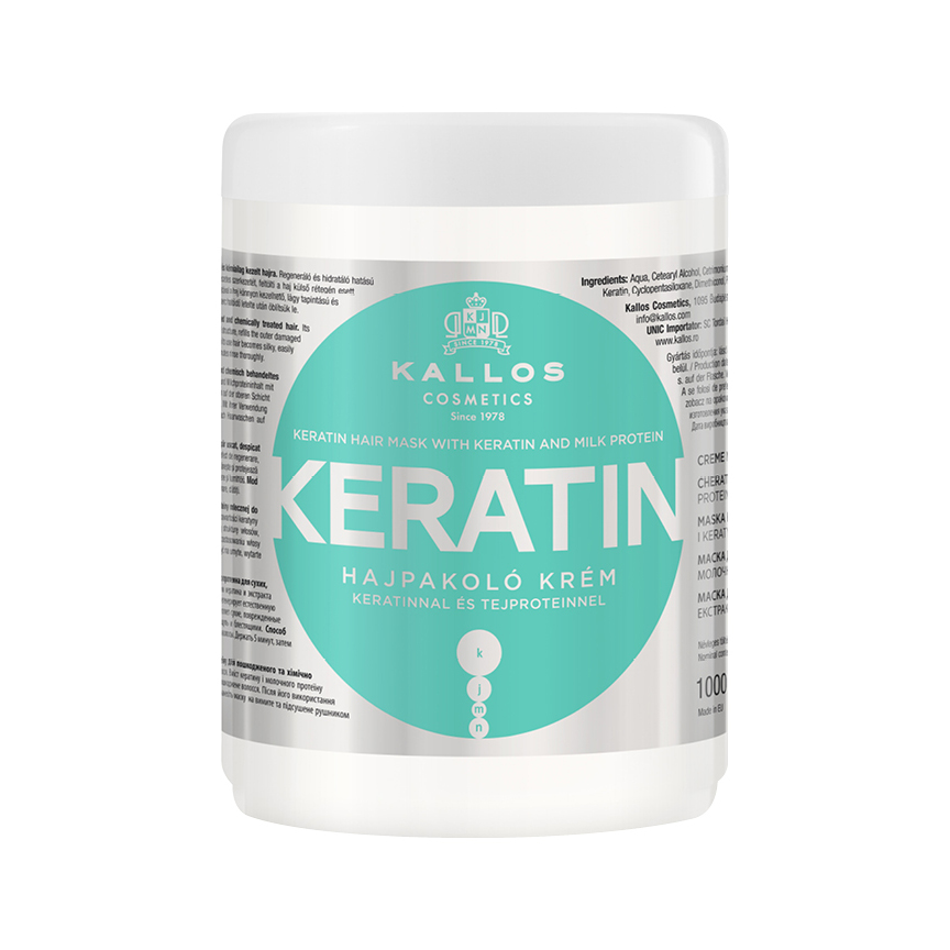 KALLOS Крем-маска KЕРАТИН для волос с Кератином и экстрактом молочного протеина для сухих,поврежденных волос,1л. /KJMN KERATIN HAIR MASK WITH KERATIN AND MILK PROTEIN