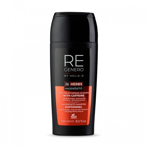 укрепляющий шампунь Regenero против выпадения волос. С кофеином, ниацинамидом и комплексом 26 трав. Радикально справляется с проблемой выпадения волос как у женщин, так и у мужчин. Формула шампуня Регенеро содержит комплекс, проникающий в корни волос уже во время мытья. Укрепляет и противодействует выпадению волос. Он обладает доказанной эффективностью, замедляя процесс облысения. Теперь Вы можете использовать силу уникального активного состава - для корней волос во время ежедневной процедуры мытья головы. Из-за отсутствия смягчителей (например, силикона), структура волоса улучшается уже после нескольких применений шампуня- тонкие и ослабленные волосы становятся сильнее и толще, что значительно облегчает их укладку. Применение: нанесите шампунь на волосы, вспеньте и оставьте для воздействия на 2 минуты.