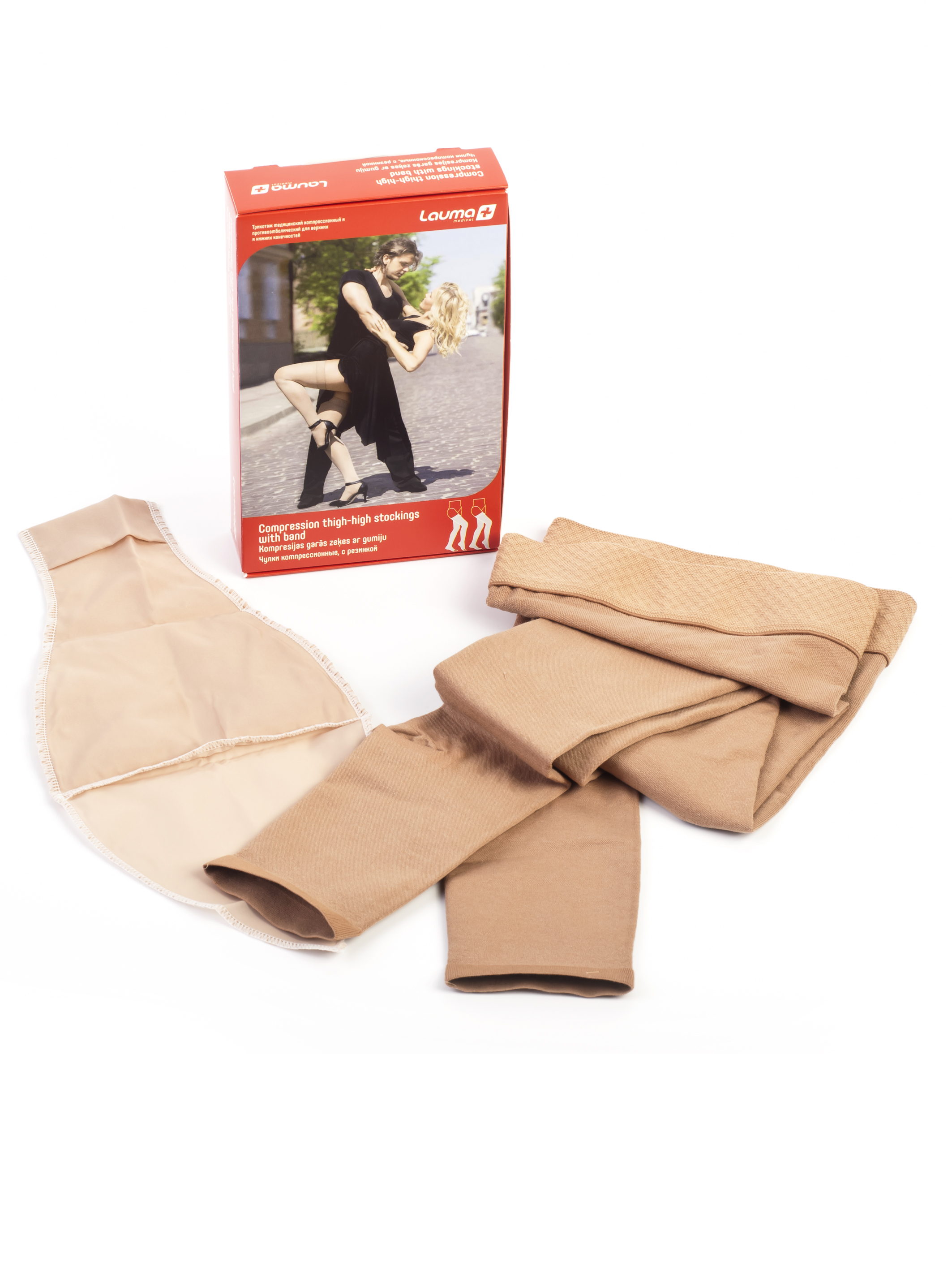 Чулки с резинкой и хлопком без мыска медицинские компрессионные Lauma Medical, класс 2, цвет натуральный, р-р 2D 1 пара