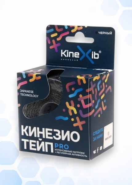 Лента клейкая КИНЕЗИО-ТЕЙП Kinexib Pro с усил. фиксацией 5м х 5см (черн.)