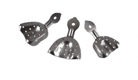 Ложка оттискная стоматологическая металлическая для верхней челюсти . Предназначена для изготовления временных назубных капп и шин из самотвердеющих пластмасс, силиконовых и альгинатных оттискных масс. Материал - нержавеющая сталь.