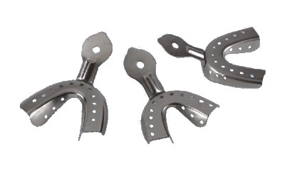 Ложка оттискная стоматологическая металлическая для нижней челюсти . Предназначена для изготовления временных назубных капп и шин из самотвердеющих пластмасс, силиконовых и альгинатных оттискных масс. Материал - нержавеющая сталь.