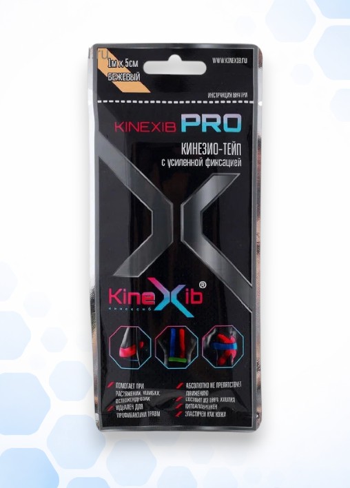 Лента клейкая КИНЕЗИО-ТЕЙП Kinexib Pro с усил. фиксацией 1м х 5см (беж.)