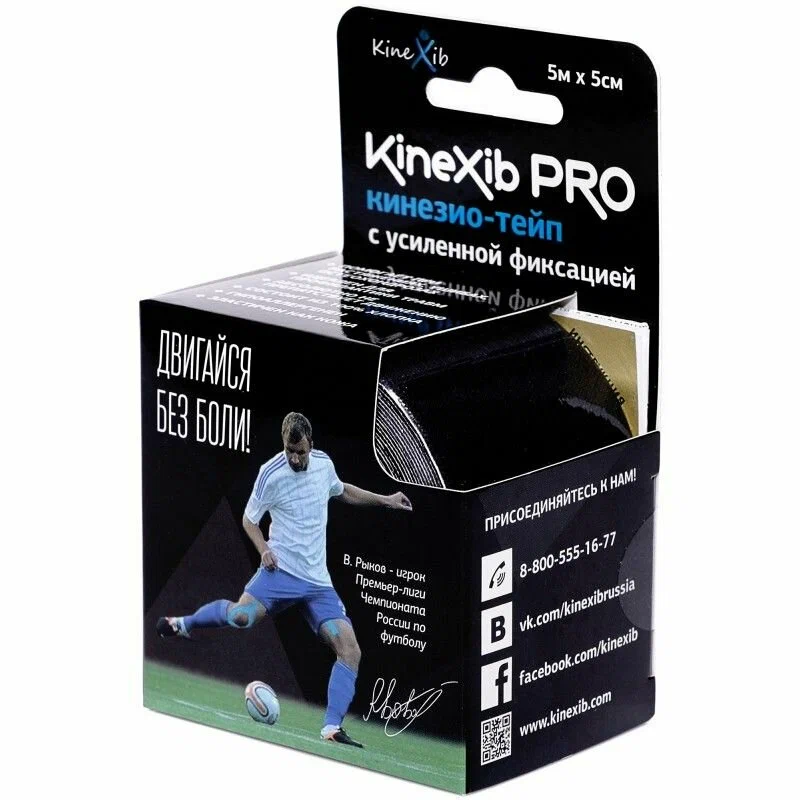 Лента клейкая КИНЕЗИО-ТЕЙП Kinexib Pro с усил. фиксацией 5м х 5см (черн.)