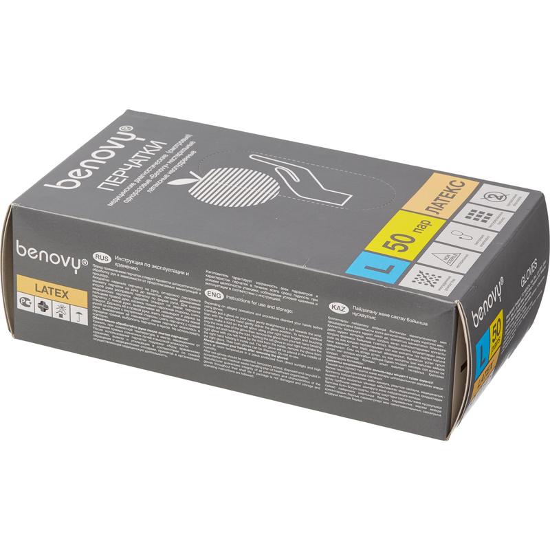 Перчатки Benovy Large латексные неопудренные двухкратного хлорирования уп-50 пар