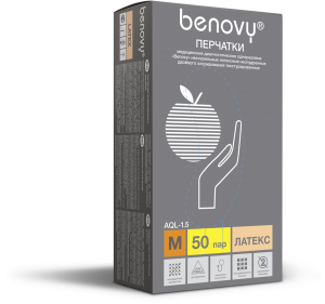 Перчатки Benovy Medium латексные неопудренные двухкратного хлорирования уп-50 пар