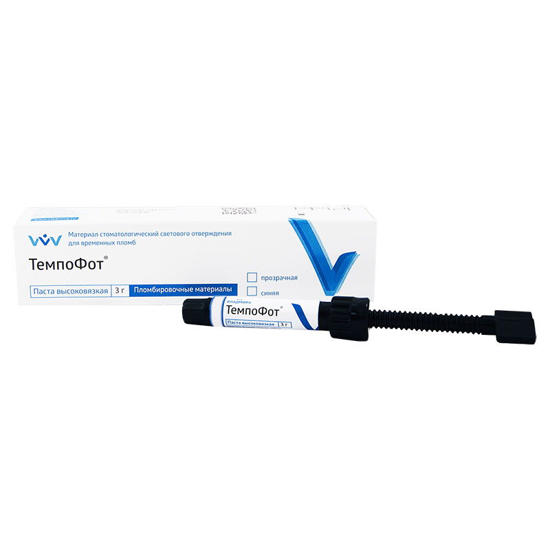 Материал «ТемпоФот» выпускается в виде пасты (прозрачной и синей), в состав которой входят: активаторы светового отверждения; стабилизаторы; технологические добавки, обеспечивающие оптимальную консистенцию; бактерицидное вещество (хлорид бензалкония), которое оказывает микробостатическое и микробоцидное действие на бактерии и кандиды.