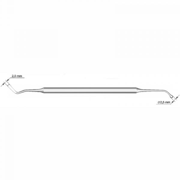 Первая рабочая часть имеет грушевидное окончание, расположенное относительно ручки под углом 40°. Диаметр грушевидной рабочей части — 2.6 мм.