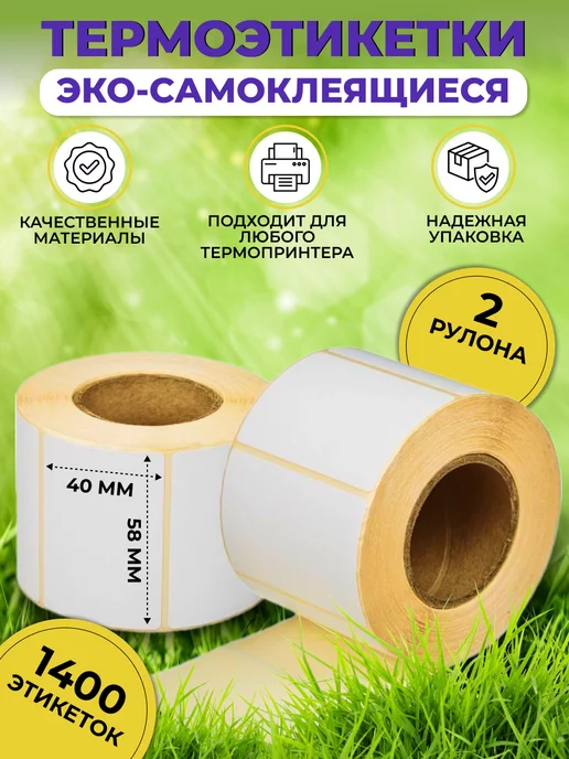 Белые этикетки 58х40 мм. Намотка 700 штук из термочувствительной бумаги ЭКО в рулонах на самоклеящейся основе. Печать осуществляется методом прямой термопечати на термо и термотрансферных принтерах этикеток или печатающих весах (без использования красящей ленты). Данный тип этикеток является наиболее популярным из-за простоты использования (для печати требуется только принтер) и низкой стоимости. Термоэтикетки 58*40 ЭКО это: бумага без защитного покрытия плотностью 65 г/кв.м. Эти этикетки для печати отличаются высокой контрастностью изображения и хорошей читабельностью и считываемостью штрих-кода. Клеящий слой обеспечивает прекрасное прилипание на широкий спектр поверхностей, включая неровные, слегка шершавые и изогнутые. Для маркировки на OZON; YYandex Market, а также в торговле, на любых складах и в весах. Клеевой слой выдерживает механические воздействия и не отрывается при эксплуатации. Этикетки отлично клеятся к пластику, металлу, бумаге, картону и дереву. Их можно использовать даже на неровных поверхностях. Для печати необходим принтер для этикеток. Помимо печати, этикетки также можно использовать для ручного нанесения надписей с помощью ручки, карандаша или фломастера. Этикетки незаменимы при переезде или для организации хранения вещей в квартире. Чем больше партия, тем выгоднее цена за 1 рулон!
