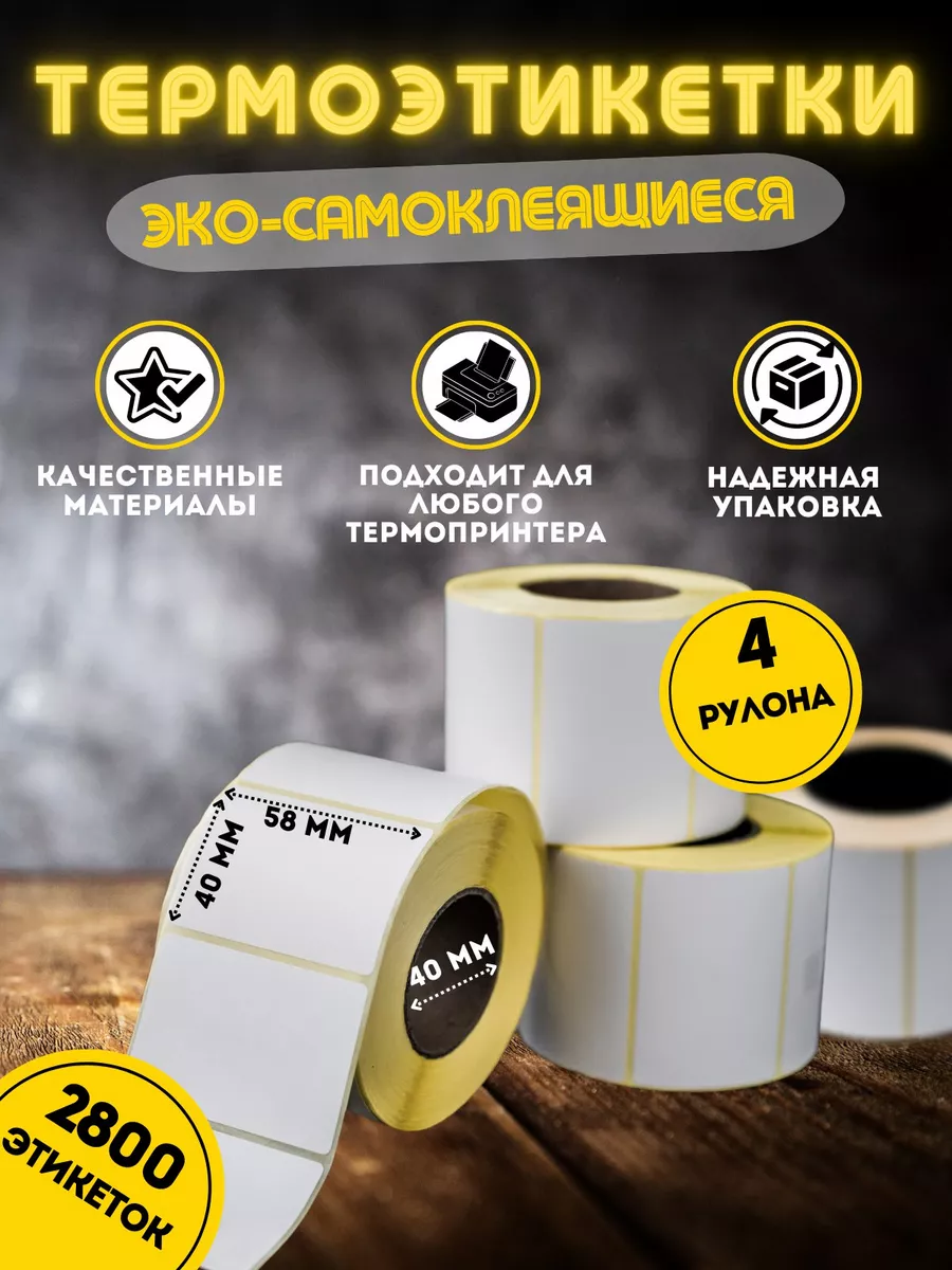 Белые этикетки 58х40 мм. Намотка 700 штук из термочувствительной бумаги ЭКО в рулонах на самоклеящейся основе. Печать осуществляется методом прямой термопечати на термо и термотрансферных принтерах этикеток или печатающих весах (без использования красящей ленты). Данный тип этикеток является наиболее популярным из-за простоты использования (для печати требуется только принтер) и низкой стоимости. Термоэтикетки 58*40 ЭКО это: бумага без защитного покрытия плотностью 65 г/кв.м. Эти этикетки для печати отличаются высокой контрастностью изображения и хорошей читабельностью и считываемостью штрих-кода. Клеящий слой обеспечивает прекрасное прилипание на широкий спектр поверхностей, включая неровные, слегка шершавые и изогнутые. Для маркировки на OZON; YYandex Market, а также в торговле, на любых складах и в весах. Клеевой слой выдерживает механические воздействия и не отрывается при эксплуатации. Этикетки отлично клеятся к пластику, металлу, бумаге, картону и дереву. Их можно использовать даже на неровных поверхностях. Для печати необходим принтер для этикеток. Помимо печати, этикетки также можно использовать для ручного нанесения надписей с помощью ручки, карандаша или фломастера. Этикетки незаменимы при переезде или для организации хранения вещей в квартире. Чем больше партия, тем выгоднее цена за 1 рулон!