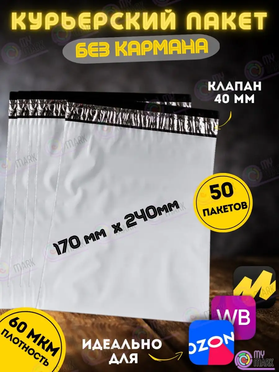 Курьерский пакет размером 170х240 с клеевым клапаном 40 мм толщиной 60 мкм подойдет для упаковки и отправки вещей бытового и промышленного назначения, например: изделий из текстиля, трикотажа, подарков, сувениров, ювелирных изделий, открыток, фотографий, предметов хозяйственного назначения, личной гигиены, аптечной продукции, семян, пряжи, канцелярских товаров и т.п. Пакеты с клеевым клапаном имеют 3 слоя непрозрачного полиэтилена: наружный белый, для нанесения необходимых надписей, внутренние черные, плотный светонепроницаемый полиэтилен. Кроме того, у пакета есть перманентный клей, который не позволит вскрыть упаковку не повредив поверхности одного или обоих слоев. Наши почтовые пакеты подходят для торговли на Wildberries, Ozon, Goods, Lamoda, Беру, СДЭК маркет, Яндекс маркет и других маркетплейсов. Если вы не нашли нужный размер, то просто кликните на название нашего бренда и получите доступ к полному списку всех размеров сейф пакетов с клеевым клапаном без кармана.