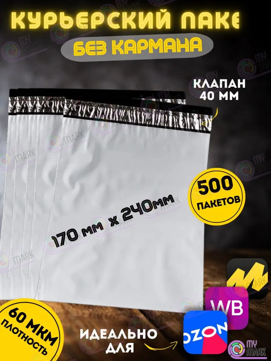 Курьерский пакет размером 170х240 с клеевым клапаном 40 мм толщиной 60 мкм подойдет для упаковки и отправки вещей бытового и промышленного назначения, например: изделий из текстиля, трикотажа, подарков, сувениров, ювелирных изделий, открыток, фотографий, предметов хозяйственного назначения, личной гигиены, аптечной продукции, семян, пряжи, канцелярских товаров и т.п. Пакеты с клеевым клапаном имеют 3 слоя непрозрачного полиэтилена: наружный белый, для нанесения необходимых надписей, внутренние черные, плотный светонепроницаемый полиэтилен. Кроме того, у пакета есть перманентный клей, который не позволит вскрыть упаковку не повредив поверхности одного или обоих слоев. Наши почтовые пакеты подходят для торговли на Wildberries, Ozon, Goods, Lamoda, Беру, СДЭК маркет, Яндекс маркет и других маркетплейсов. Если вы не нашли нужный размер, то просто кликните на название нашего бренда и получите доступ к полному списку всех размеров сейф пакетов с клеевым клапаном без кармана.