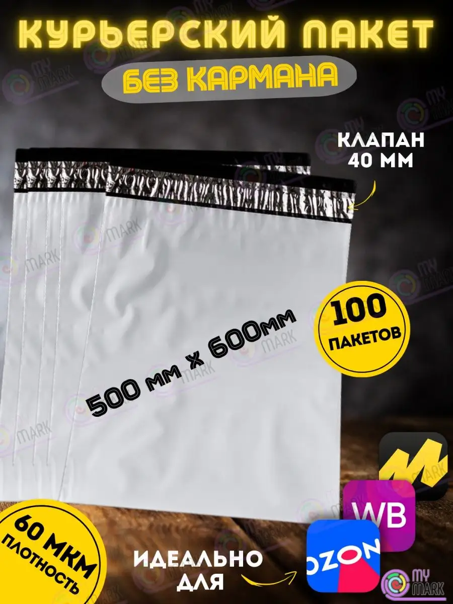 Курьерский пакет размером 500х600 с клеевым клапаном 40 мм толщиной 60 мкм подойдет для упаковки и отправки вещей бытового и промышленного назначения, например: изделий из текстиля, трикотажа, подарков, сувениров, ювелирных изделий, открыток, фотографий, предметов хозяйственного назначения, личной гигиены, аптечной продукции, семян, пряжи, канцелярских товаров и т.п. Пакеты с клеевым клапаном имеют 3 слоя непрозрачного полиэтилена: наружный белый, для нанесения необходимых надписей, внутренние черные, плотный светонепроницаемый полиэтилен. Кроме того, у пакета есть перманентный клей, который не позволит вскрыть упаковку не повредив поверхности одного или обоих слоев. Наши почтовые пакеты подходят для торговли на Wildberries, Ozon, Goods, Lamoda, Беру, СДЭК маркет, Яндекс маркет и других маркетплейсов. Если вы не нашли нужный размер, то просто кликните на название нашего бренда и получите доступ к полному списку всех размеров пакетов. Сейф пакеты с клеевым клапаном без кармана.