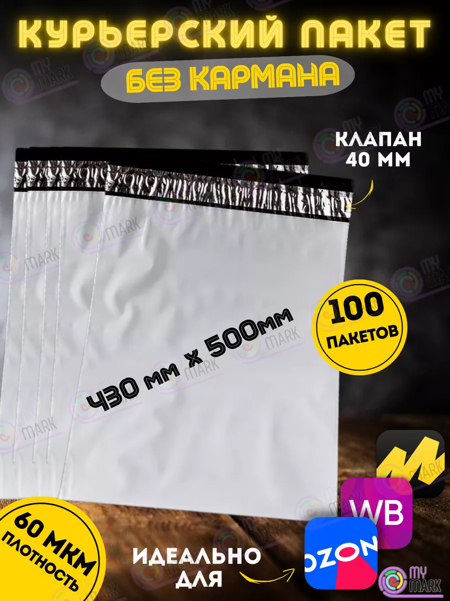 Курьерский пакет размером 430х500 с клеевым клапаном 40 мм толщиной 60 мкм подойдет для упаковки и отправки вещей бытового и промышленного назначения, например: изделий из текстиля, трикотажа, подарков, сувениров, ювелирных изделий, открыток, фотографий, предметов хозяйственного назначения, личной гигиены, аптечной продукции, семян, пряжи, канцелярских товаров и т.п. Пакеты с клеевым клапаном имеют 3 слоя непрозрачного полиэтилена: наружный белый, для нанесения необходимых надписей, внутренние черные, плотный светонепроницаемый полиэтилен. Кроме того, у пакета есть перманентный клей, который не позволит вскрыть упаковку не повредив поверхности одного или обоих слоев. Наши почтовые пакеты подходят для торговли на Wildberries, Ozon, Goods, Lamoda, Беру, СДЭК маркет, Яндекс маркет и других маркетплейсов. Если вы не нашли нужный размер, то просто кликните на название нашего бренда и получите доступ к полному списку всех размеров пакетов. пакеты с клеевым клапаном без кармана.
