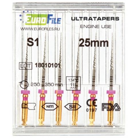Ultratapers Engine S1, 25мм 6 шт-машинные файлы никель-титановые (Eurofile)