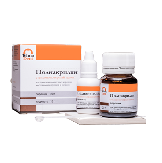 Полиакрилин СИЦ (20 г порошка/16 г жидкости) -для фиксации одиночных коронок, мостовидных протезов и вкладок Технодент/Россия