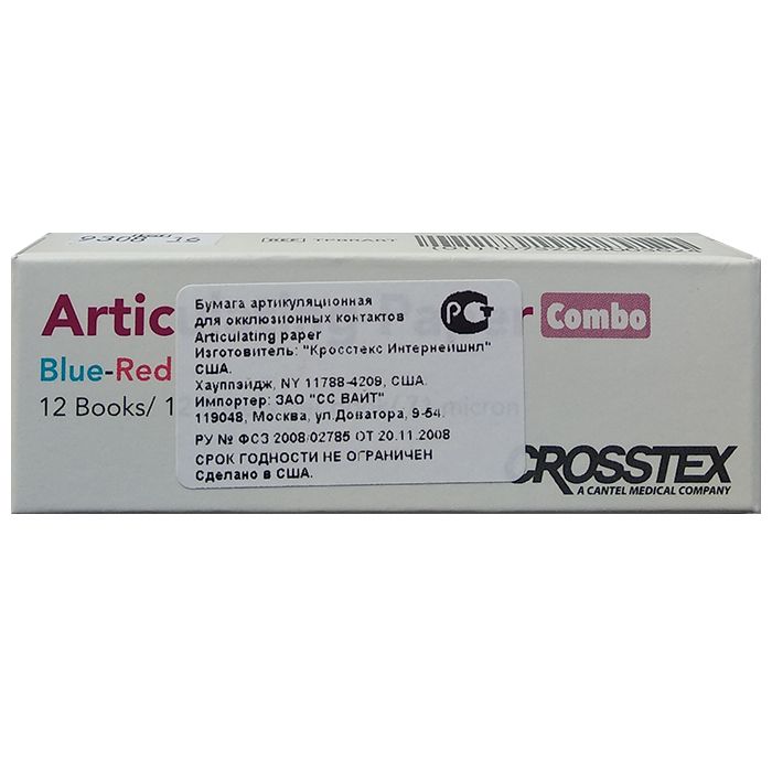 Бумага артикуляционная красно-голубая прямая 101,6 мкм 12кн* 12л (Crosstex)