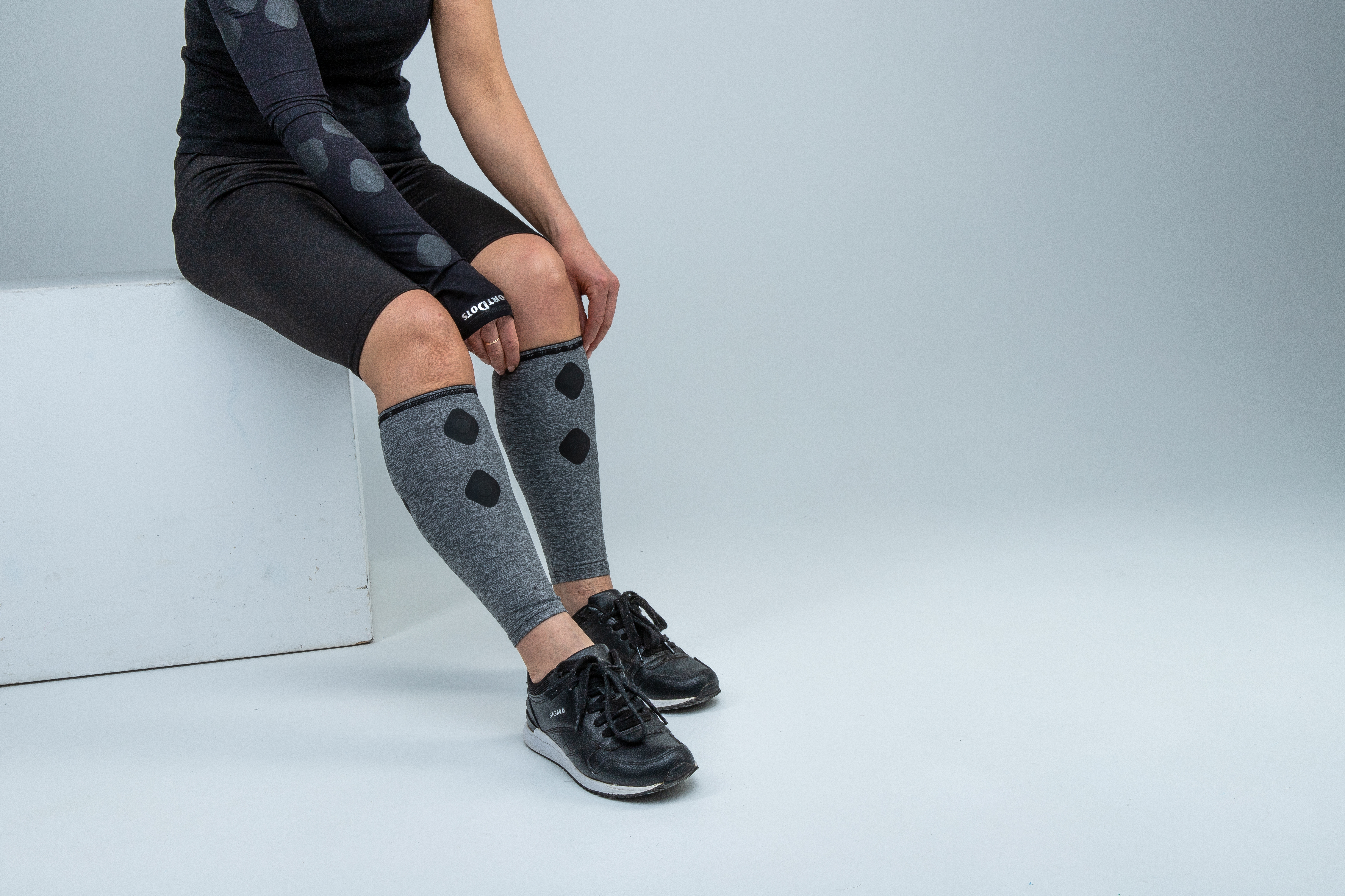 Гетры SportDots разработаны для профилактики варикозного расширения вен, улучшения кровообращения и лимфотока в области голени. Они помогают поддерживать упругость кожи, предотвращают отёчность и дряблость, а также эффективно снижают чувство усталости и тяжести в ногах. Регулярное использование гетр поддерживает венозный тонус и уменьшает нагрузку на сосуды, снижая риск развития варикоза и облегчая симптомы нарушенного венозного оттока. Зоны: Расположение в области длинной малоберцовой мышцы и надкостницы: Улучшение кровообращения в данной области увеличивает выносливость мышцы, что позволяет более эффективно выполнять постановку стопы при длительном беге и ходьбе. Улучшение питания надкостницы снижает утомление мышц голени, уменьшает неприятные болевые ощущения и позволяет быстрее восстанавливаться; Доты расположены в области передней большеберцовой артерии: Воздействие Дотов на переднюю большеберцовую артерию, которая кровоснабжает стопу, а также на глубокий малоберцовый нерв, улучшает питание стопы, снижает болевые ощущения в стопе и передней поверхности голени, избавляет от ощущения тяжести в ногах и профилактирует невропатические боли нижних конечностей; Доты активно воздействуют на большую подкожную вену ноги: способствуют улучшению оттока венозной крови от нижних конечностей, профилактируя образование отёков и появление сосудистых звёздочек; Доты за счёт рефлекторного воздействия на область прохождения малоберцовых вен и артерий: улучшают коллатеральный кровоток, образованный капиллярами, тем самым профилактируя застой крови в данном участке нижних конечностей, снижая болевые ощущения в мышцах, профилактируя возникновение судорог и способствуя снижению развития варикозного расширения вен; Доты за счёт усиления микроколебаний данной области рефлекторно воздействуют на область икроножных мышц и крупных сосудов, таких как большеберцовые вены и большеберцовая артерия. Воздействие Дотов на заданную область снижает отеки нижних конечностей, профилактирует образование варикозного расширения вен или уменьшает прогрессирование данного заболевания, повышает выносливость мышц голени за счёт притока питательных веществ и кислорода, тем самым снижая чувство усталости и тяжести в ногах после длительной ходьбы или статической нагрузки (например, в положении стоя).