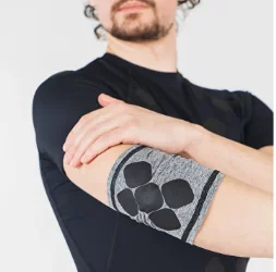 Доты эффективно воздействуют на связки и капсулу локтевого сустава, так как эти структуры расположены близко к коже, что позволяет направлять воздействие максимально точно. Доты обеспечивают быстрое снятие боли и устранение дискомфорта при травмах, возрастных изменениях и перенапряжении. Они ускоряют восстановление тканей, повышают эластичность связок и способствуют улучшению моторного контроля. Размещение Дотов в областях, подверженных нагрузкам, помогает предотвратить новые травмы и поддерживает здоровое функционирование сустава, улучшая кровообращение и снижая риск воспалений. Зоны: Прикрепление трехглавой мышцы плеча, проекция срединного нерва: Доты расположены в области, где срединный нерв располагается наиболее близко к поверхности. Воздействие дотов на срединный нерв оказывает положительное влияние на иннервацию не только локтевого сустава и плеча, но и предплечья. В основном все воспаления и травмы сустава негативно сказываются на срединном нерве, доты улучшают эластичность нервной ткани за счет усиления циркуляции крови и снижают болевые ощущения в локте и предплечье. Доты также воздействуют на место прикрепления трехглавой мышцы (трицепса), что обусловлено усилением циркуляции крови в заданной области и снижает риск надрыва или разрыва трицепса, а также снижает болевые ощущения в этой мышце; Локтевой отросток, суставная сумка, суставной хрящ: Доты, воздействуя на ткани, улучшают процессы регенерации суставного хряща, профилактируют дегенеративно-дистрофические изменения и воспаления (артроз, артрит, эпикондилит); Место прикрепления локтевого сгибателя кисти: Доты, усиливая циркуляцию крови, улучшают функцию сгибания лучезапястного сустава и снижают болевые ощущения при сгибательных движениях в кисти, включая случаи синдрома карпального канала.