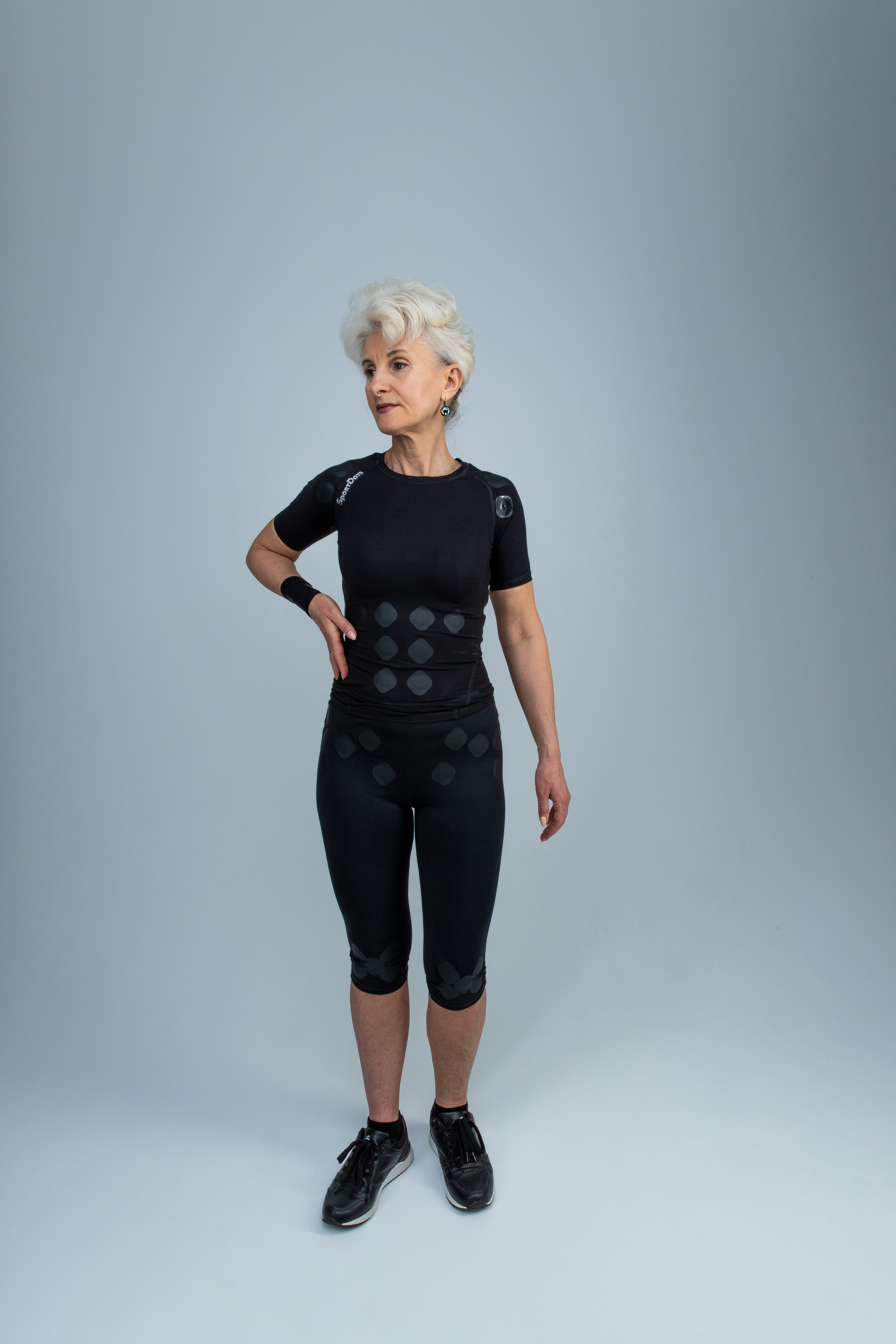 Доты на фронтальной зоне футболки играют важную роль в ускорении обмена веществ и очищении клеток и тканей организма, поскольку расположены в области главного и правого лимфатических протоков, а также важных лимфатических узлов, улучшая лимфоток. Зоны: Место прикрепления большой грудной мышцы к 2, 3–ему ребру: За счет своего воздействия, повышающего колебания тканей кожи, фасций и мышц, Доты способствуют улучшению эластичности этих тканей, увеличению экскурсии грудной клетки, а значит, и увеличению глубины вдоха и выдоха. Это, в свою очередь, способствует насыщению крови кислородом и улучшает обменные процессы во всем организме; Большая и малая грудная мышцы: Доты улучшают эластичность и кровообращение данной области и способствуют снижению напряжения и боли в шейно-грудном отделе, так как спазмированные мышцы грудной клетки увеличивают кифоз грудного отдела позвоночника и снижают его подвижность; Место прикрепления 3 и 4 ребра к мечевидному отростку: Доты улучшают подвижность в данной области, что увеличивает глубину вдоха и выдоха и способствует улучшению газообмена во всем организме; Дот воздействует на ткани кожи и фасции в области печени и желчного пузыря: Улучшая микроциркуляцию крови и лимфы, Дот способствует уменьшению застойных явлений в данной области, тем самым опосредованно влияет на состояние желчного пузыря и печени, снижая неприятные ощущения, такие как тяжесть в правом подреберье и вздутие живота; Дот расположен в области поджелудочной железы: Улучшение кровообращения в данной области способствует улучшению работы поджелудочной железы и снижает болевые и неприятные ощущения в области левого подреберья; Область верхнего купола диафрагмы: Доты способствуют релаксации диафрагмы, таким образом снижая внутрибрюшное давление, улучшают дыхательную функцию и снижают нагрузку на сердечную мышцу; Область прямой мышцы живота, брюшной полостиДоты улучшают кровообращение и лимфоток в данной области, уменьшают напряжение в области внутренних органов брюшной полости и поясницы, способствуя профилактике болевых ощущений.
