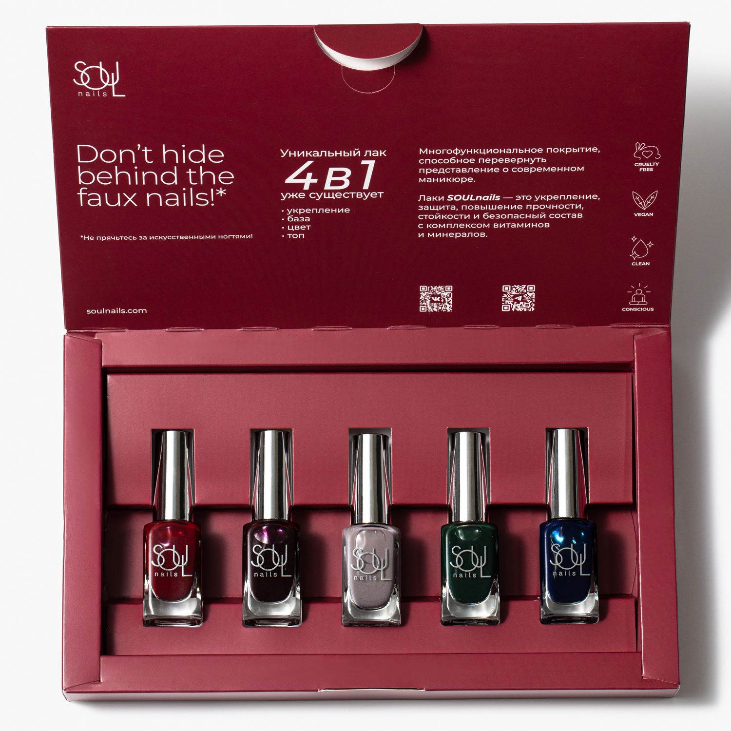 Погрузитесь в мир красоты и заботы о ногтях с набором лаков SOULnails FALL 24! Каждая женщина мечтает о безупречном маникюре, который будет не только красивым, но и полезным для здоровья ногтей. Набор лаков SOULnails FALL 24 — это идеальное решение для тех, кто ценит качество и заботится о своих руках. Лаки из этого набора не просто окрашивают ногти, но и укрепляют их благодаря уникальной формуле, насыщенной витаминами и минералами.