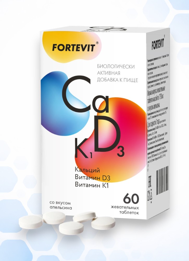 Фортевит Кальций Д3+К1 таб. №60 (апельсин)