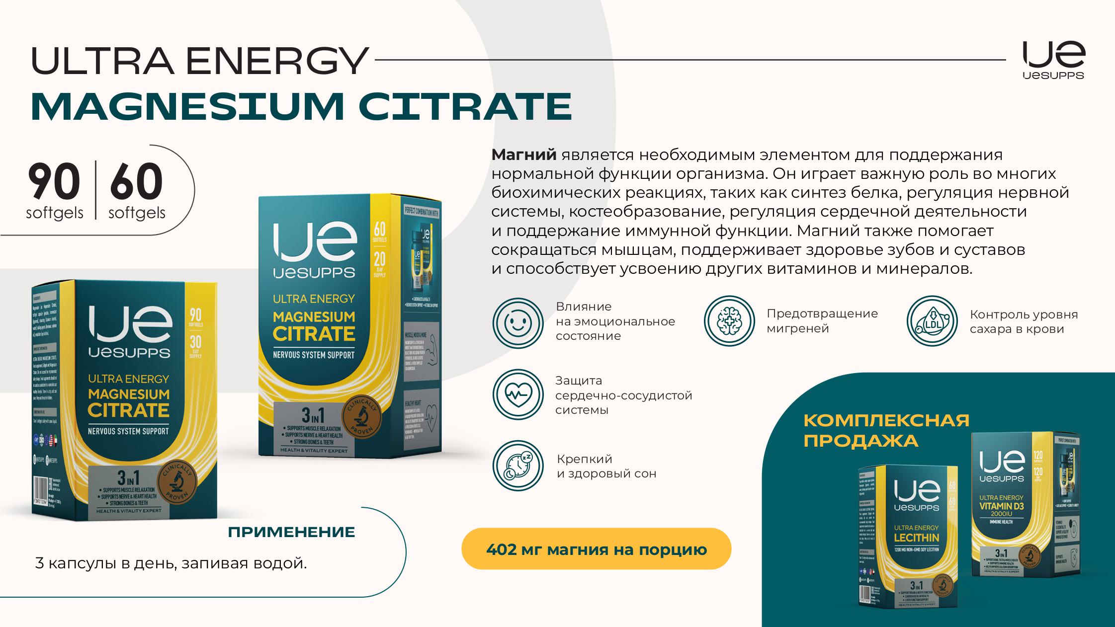 UESUPPS (УЕСАППС) Ультра Энерджи Магния Цитрат капс. №90