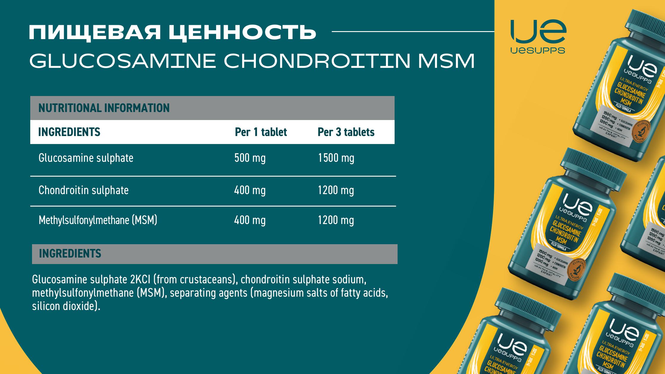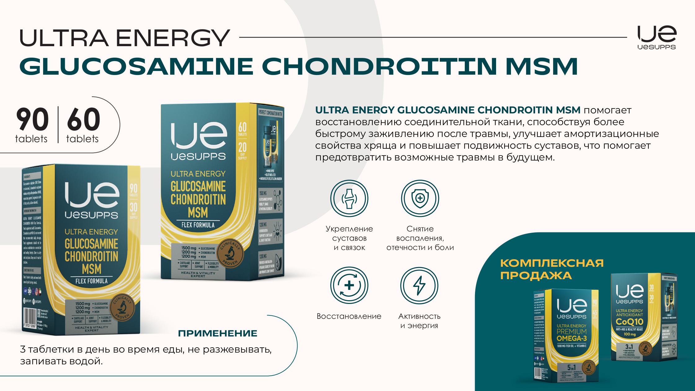 UESUPPS (УЕСАППС) Ультра Энерджи Флекс Формула Глюкозамин Хондроитин МСМ таб. №60