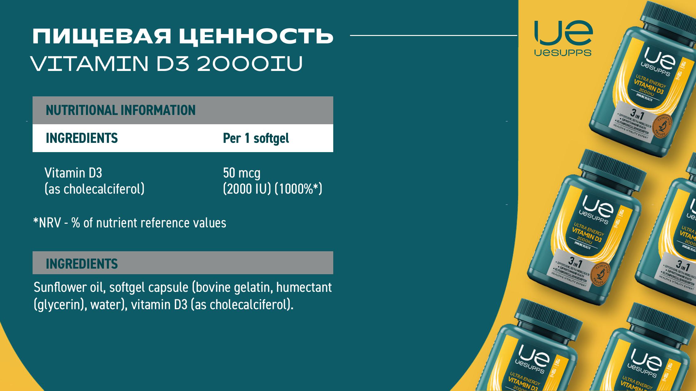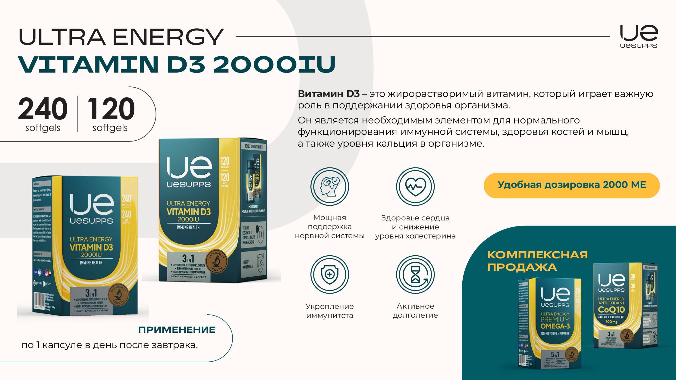 UESUPPS (УЕСАППС) Ультра Энерджи Витамин D3 2000МЕ капс. №120