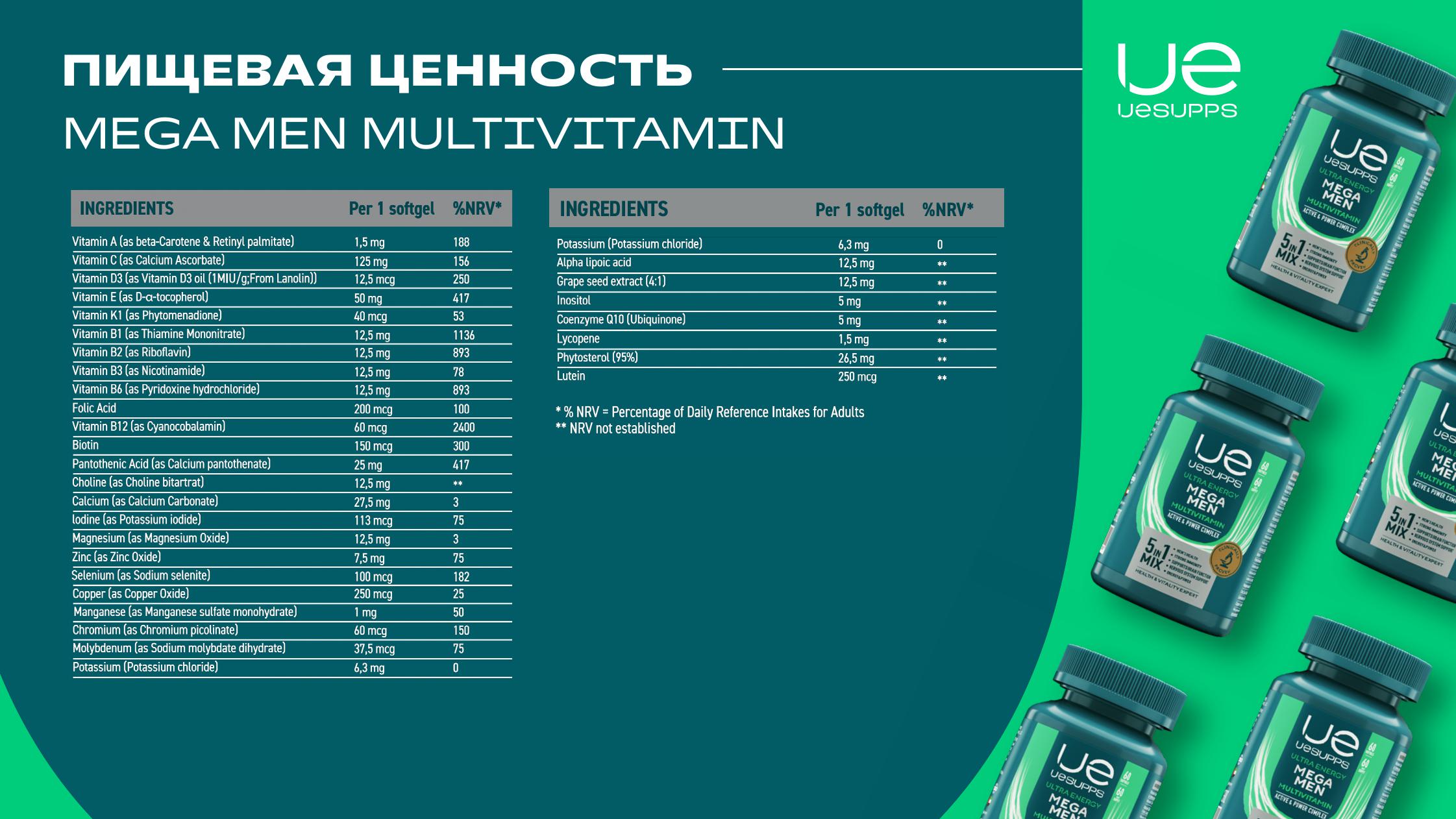 UESUPPS (УЕСАППС) Ультра Энерджи Мега Мен Мультивитамин капс. №60