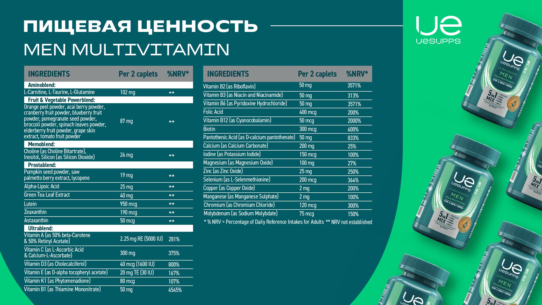 UESUPPS (УЕСАППС) Ультра Энерджи Мен Мультивитамин Формула таб. №60