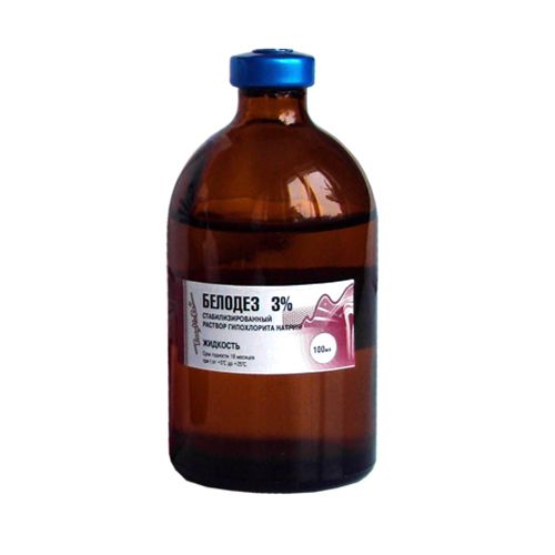 Белодез раствор 3% ,100 мл (гипохлорит натрия 3%) ВладМиВа, применяется для медикаментозной обработки корневых каналов в качестве бактерицидного, кровоостанавливающего и отбеливающего средства, для химического расширения каналов в сочетании с раствором ЭДТА. Форма выпуска жидкость 100 мл во флаконе