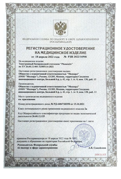 Электронный стетоскоп предназначен для аускультации и усиления исключительно слабых звуков тела, исходящих из сердца и легких; Телемедицинская аускультация как в онлайн режиме, так и в асинхронном. Изделие рекомендуется использовать при диагностике пациентов I-II группы патогенности (в т.ч. COVID-19), т.к. позволяет проводить аускультации без нарушения целостности средств индивидуальной защиты.