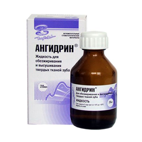 Ангидрин жидкость для обезжиривания и высушивания твердых тканей зуба, 20 мл (ВладМиВа) содержит биосовместимую добавку, которая запечатывает и защищает дентинные канальцы, образуя тон-кий мономолекулярный барьер, поэтому после обработки культи «живого» зуба перед установкой коронки у пациента снижается болезненное ощущение от фиксирующего цемента. Не содержащая диэтилового эфира и этанола жидкость не оказывает вредного воздействия на окружающие мягкие ткани, не вызывает болезненности при попадании на слизистую поверхность полости рта.