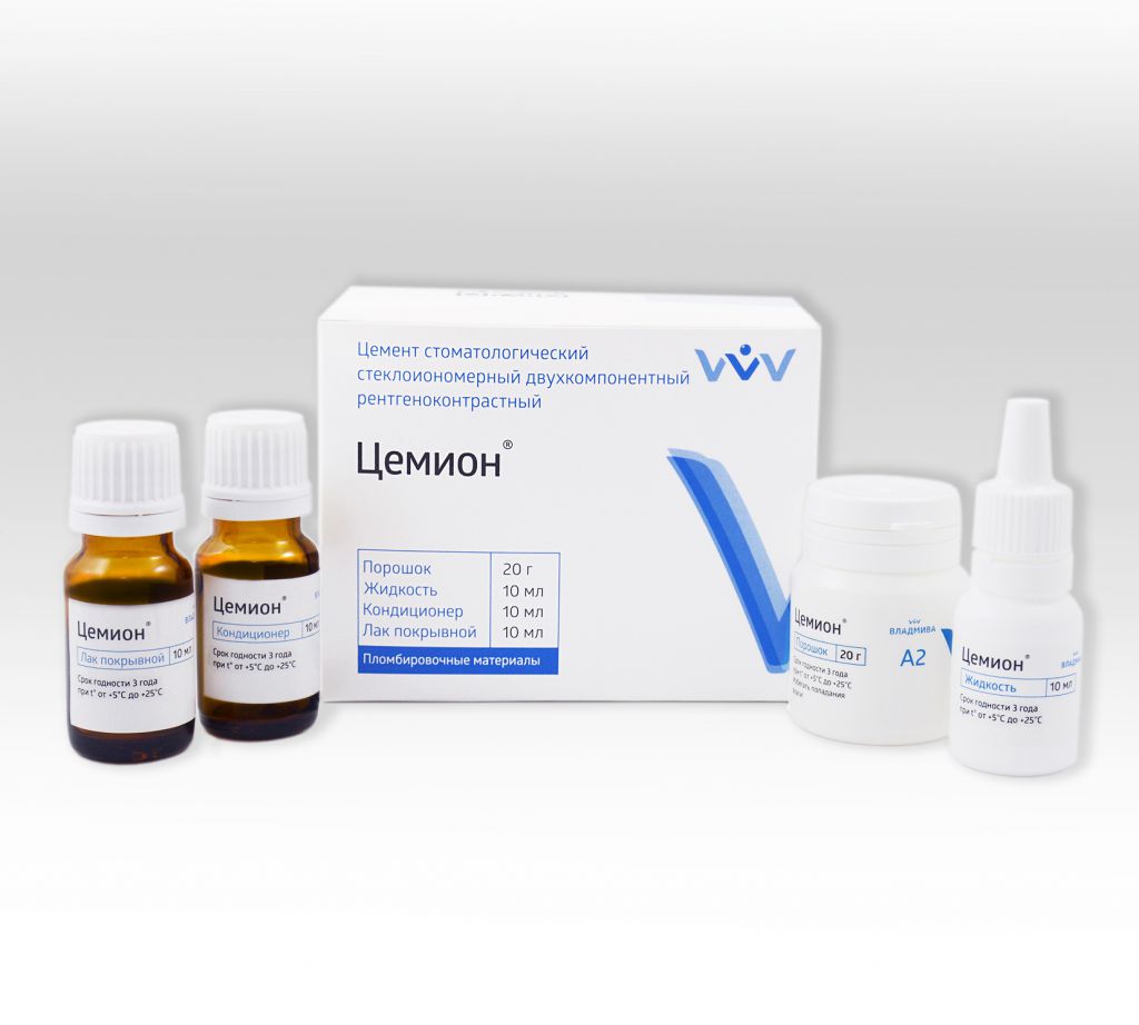 Цемион — традиционный стеклоиономерный цемент химического отверждения, обладающий химической адгезией к дентину и эмали. Выпускается в виде комплекта порошок-жидкость. «Цемион» образуется при смешивании порошка и жидкости. Порошок представляет собой измельченное алюмофторсиликатное стекло, жидкость – водный раствор модифицированной полиакриловой кислоты.