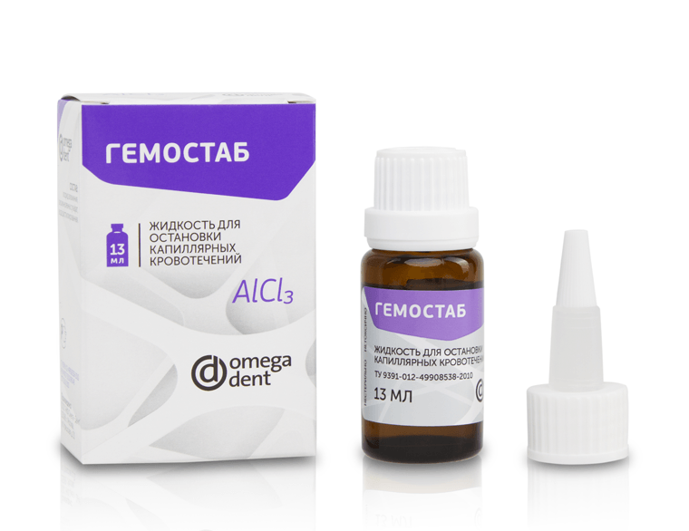 Благодаря входящему в состав хлориду алюминия, "ГЕМОСТАБ" позволяет остановить капиллярное кровотечение. Для этого необходимо изолировать участок с помощью ватного тампона и обработать поверхность десны кровоостанавливающим раствором.
