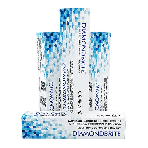 Он также содержит самопротравливающий адгезив, которые позволяют применять его для постоянной цементировки металлических, металлокерамических, пластмассовых/композитных, керамических и фарфоровыхинлеев, онлеев, коронок, мостовидных протезов и эндодонтических штифтов без нанесения отдельных систем для бондинга эмали и дентина. Отвержденный цемент Diamondbrite Multi Cure Composite Cement фактически гидрофобен, значительно уменьшает водопоглощение после процесса отверждения, а также минимизирует растворение и гидроскопическое расширение.